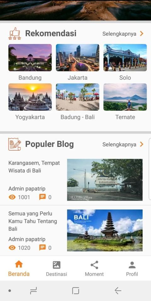 Papatrip adalah sebuah aplikasi travel yang memberikan berbagai macam informasi tentang suatu kota seperti tempat wisata, hotel, kuliner, blog dan tempat belanja.
