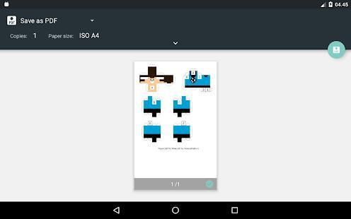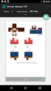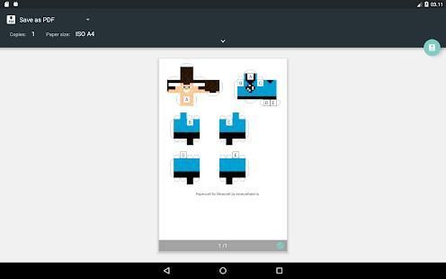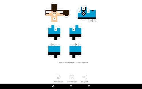 Dengan aplikasi ini Anda dapat mencetak semua skin yang Anda suka dari Minecraft. Skema yang dicetak dapat dipotong dan dihubungkan untuk membuat sosok tiga dimensi dari karakter favorit Anda!