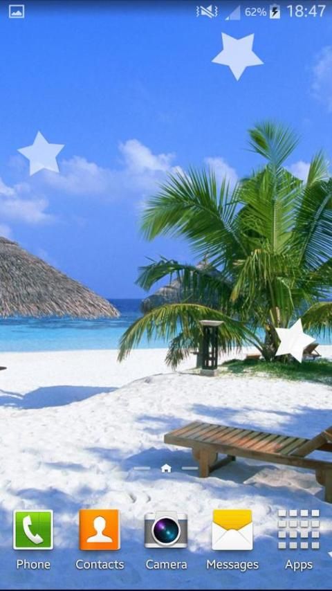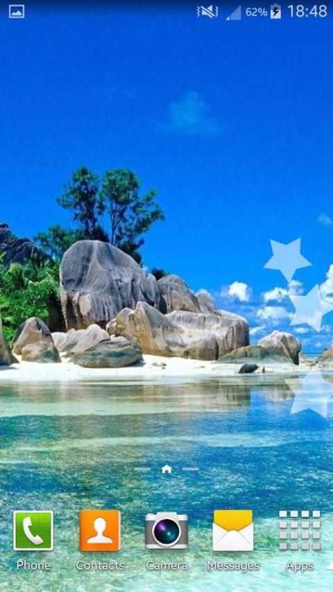 Let our nature wallpaper be your personal paradise tracker! Find a blue lagoon and be enchanted by a perfect summer landscape! Imagine you are on some tropical island drinking your favorite cocktail on the beach while looking and listening to the ocean waves. All your problems will be washed away by the sunlit waves of a blue sea! Sit in the shade of a huge palm tree and you sip your cocktail while the white sand gently caresses your feet! You have the once-in-a-lifetime chance to visit the paradise places which are even more beautiful than Hawaii, Costa Rica and Capri Island! With this Samsung live wallpaper you can enjoy the allure of a ''paradise beach'' from sunrise 'till sunset! Take a cruise and see miraculous waterfalls and colorful flowers! Feel the charms of the marine life! Explore each and every ''summer beach'' and reveal all their secrets! When the Sun goes down, this summer place still stays alive! It turns into a romantic paradise! Fall in love while walking along a pretty summer beach! Be enchanted by the moonlit sea! Make a wish when you see a shooting star! And don't be afraid of the dark! The starlight and the beams of the Moon will show you the way! Your personal oasis of clear-water beaches is waiting for you! Let this summer paradise in and enjoy!
