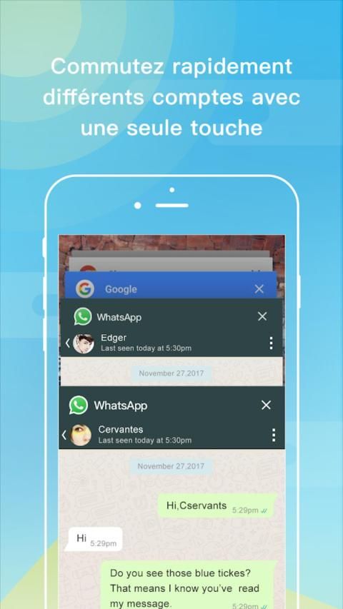 - L'espace double exécutera deux comptes simultanément sur votre téléphone, vous pourrez facilement les changer avec une seule touche, puis gérer efficacement différents comptes.
