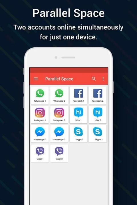 dukungan ruang paralel Messaging yang paling Instan. Beberapa akun dapat bekerja secara bersamaan pada satu perangkat, hubungkan teman-teman yang berbeda dan berbagi informasi paralel. Sangat mudah untuk menggunakan aplikasi ruang paralel ini. Nikmati akun beberapa Anda dari aplikasi jejaring sosial dalam satu aplikasi ruang paralel. Tidak peduli di mana Anda, hanya men-download aplikasi ruang paralel gratis