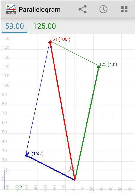 Cepat menemukan hasil dari dua kekuatan segala arah. Sangat berguna untuk teknik sipil / mekanik.