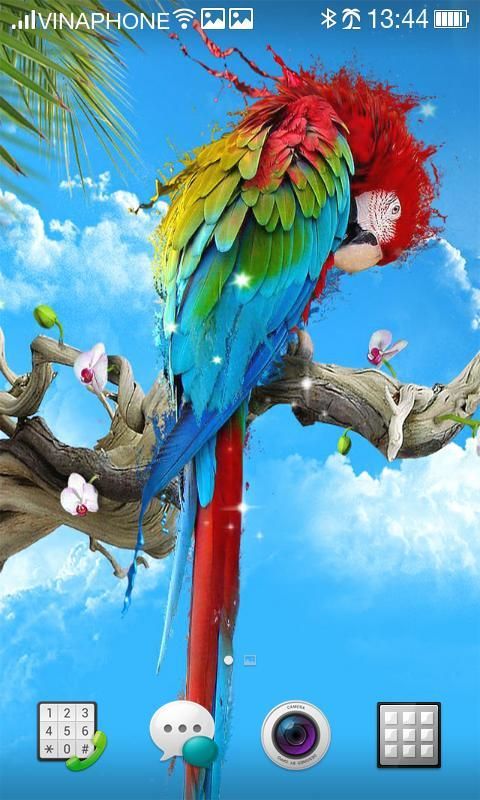 Untuk Gunakan: HOME => Menu (atau tekan lama) => Wallpaper => Hidup Wallpaper => ParrotWallpaper => Terapkan