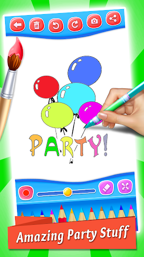 Anda dapat menggambar, melukis dan mewarnai kue, balon, ulang tahun yang berbedaStiker dan hal -hal pesta dengan imajinasi dan kreativitas Anda.Biarkan Anda menjadi kreatif dengan mengunduh game gratis ini dengan banyak gambar dari berbagai hal pesta ulang tahun.