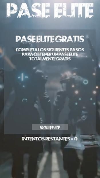 Para conseguir tu PASE ÉLITE GRATIS solo tienes que completar los pasos que exija la Aplicación sin saltarse ninguno.