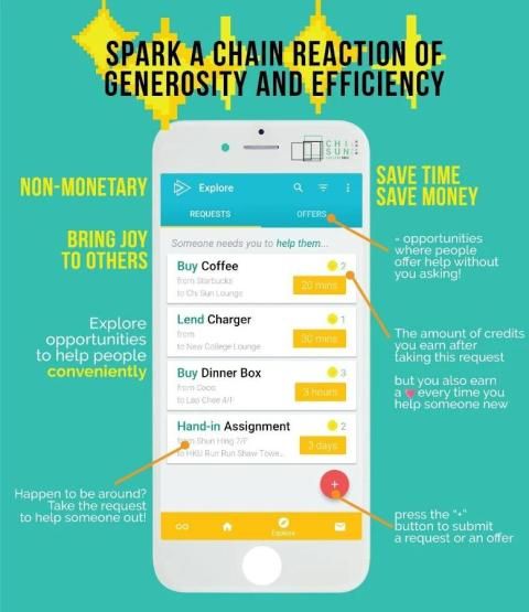 Sebuah platform mobile bagi pengguna untuk bertukar kenyamanan dengan kenyamanan, kebaikan dengan kebaikan. Menikmati layanan concierge gratis dengan melakukan orang lain kebaikan nyaman.
