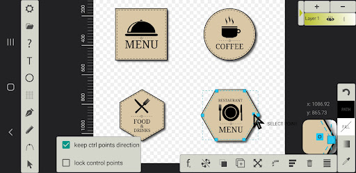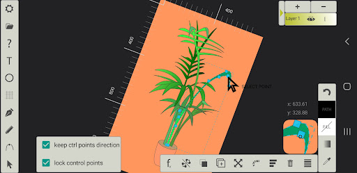 Aplikasi gambar vektor, khususnya alat pena.Ini memungkinkan untuk menyimpan gambar dalam format SVG, yang dapat dengan mudah diimpor dari program desain vektor yang lebih lengkap seperti Adobe Illustrator.