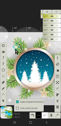 Menentukan setiap kurva menggunakan 2 titik kontrol dan titik asal dan tujuan, menggeser jari pada layar.