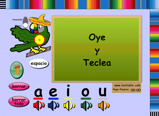 di sekitar papan Anda akan melihat dalam urutan abjad semua huruf, pergi vokal diblokir dan / y / yang terdengar seperti (i). Yang terakhir akan muncul di bagian bawah yang diikuti oleh yang lain pada koretitas dengan warna-warna yang sama dari Peak Pepe, karena mereka menunjukkan tempat yang menempati lidah saat mengucapkannya. Burung hanya bisa mengucapkan: A, E, I, dan, atau, u. Situs Tujuan dari mengikuti dikte vokal Pepe adalah, buka saluran pendengaran pemain pada saat yang sama dengan mengembangkan mekanisme waktu dan ruang sehingga memfasilitasi pembelajaran. Dalam hal memvisualisasikan dikte, memori visual akan dikembangkan bukan pendengaran. Situs Anda dapat berlatih hanya untuk lebih gesit dan meningkatkan catatan Anda atau memainkannya dengan keluarga dan teman-teman.