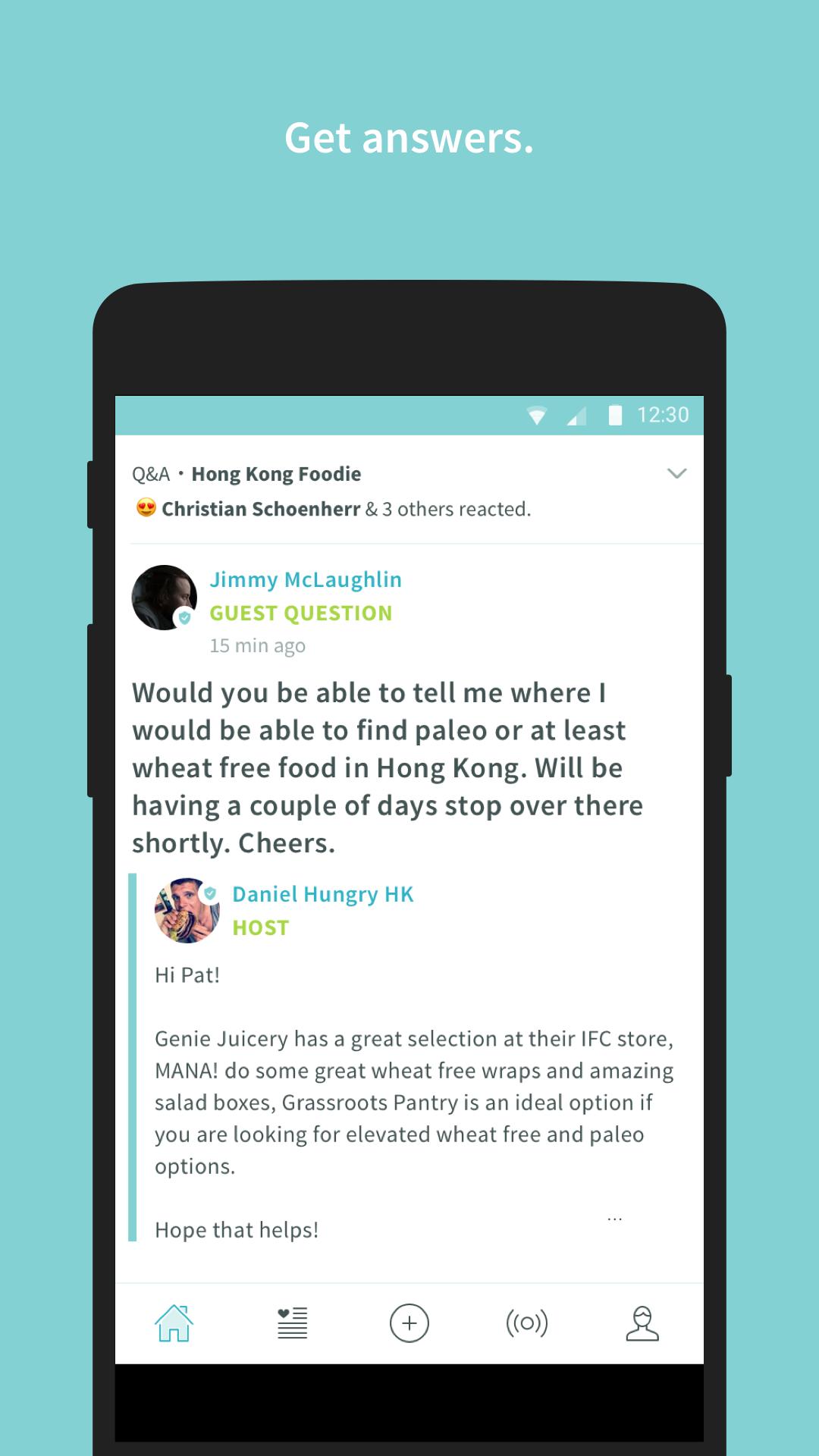 A: Get insider tips, direct from the locals. Your Pepo feed presents a stream of tips and experiences we think you might like based on the people you follow, channels you join, and topics you are interested in.