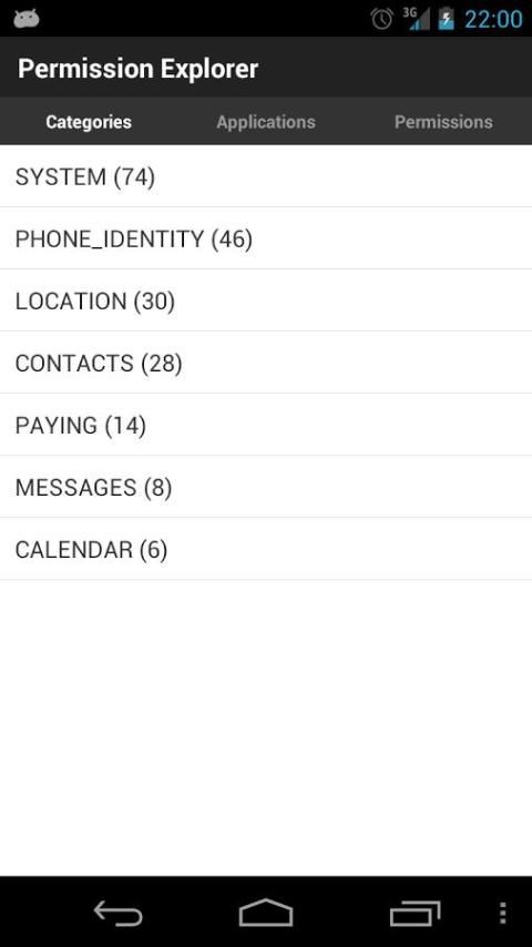 - View by categories : Which applications can access to your localization, contacts, calendar...