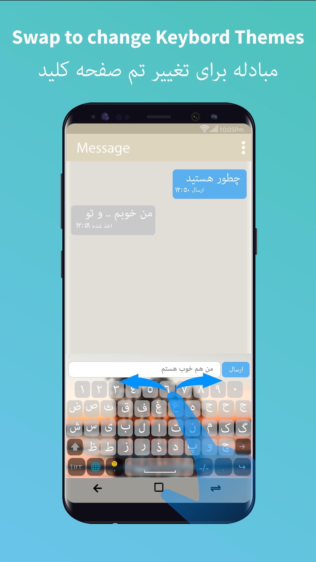 ✔You can turn it into Farsi keyboard app just turn Farsi keypad for Android in settings and update your status and sent messages to your friend or loved ones.