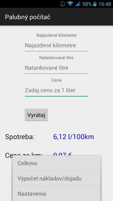 Aplikasi ini digunakan untuk menghitung konsumsi (bensin, diesel, gas) kendaraan tanpa on-board komputer. Setelah memasukkan data menunjukkan konsumsi bahan bakar dan harga per 1 Perjalanan kilometer. Hal ini juga mempertahankan semua entri yang merupakan gambaran umum dari jarak tempuh dan biaya. Juga, Anda dapat menghitung ulang biaya perjalanan yang direncanakan dan jarak tempuh. Setelah memasukkan data dalam pengaturan aplikasi menyoroti kebutuhan untuk mengubah minyak dalam mesin.