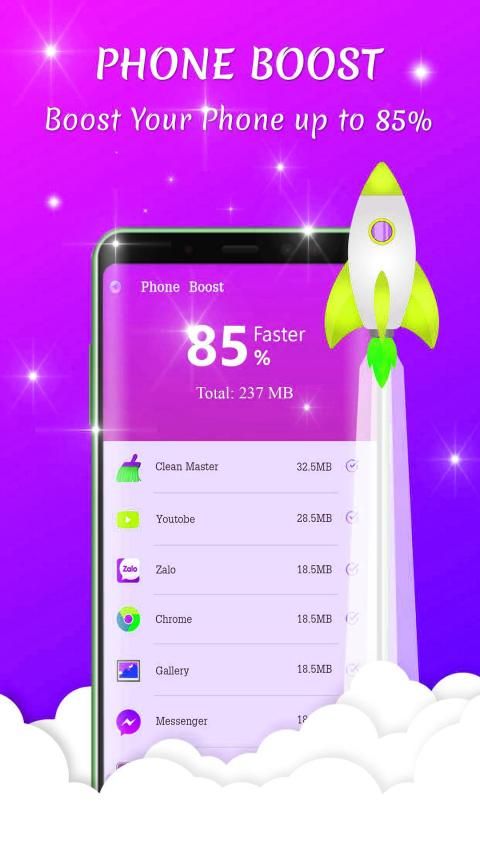 Phone Booster, salah satu alat pengoptimuman terbaik dengan pembersih ruang untuk peranti android, membantu menjaga telefon anda bersih dan selamat dari virus. Phone Booster juga mengosongkan ruang dan RAM untuk meningkatkan prestasi telefon anda. Nikmati telefon bimbit anda sekarang!
