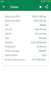 – Screen Display Info: Display size or resolution, density unit, density type, device display type, and orientation.