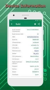 – Device Info: Model, Manufacturer, Chipset, Build Number and Android OS version.