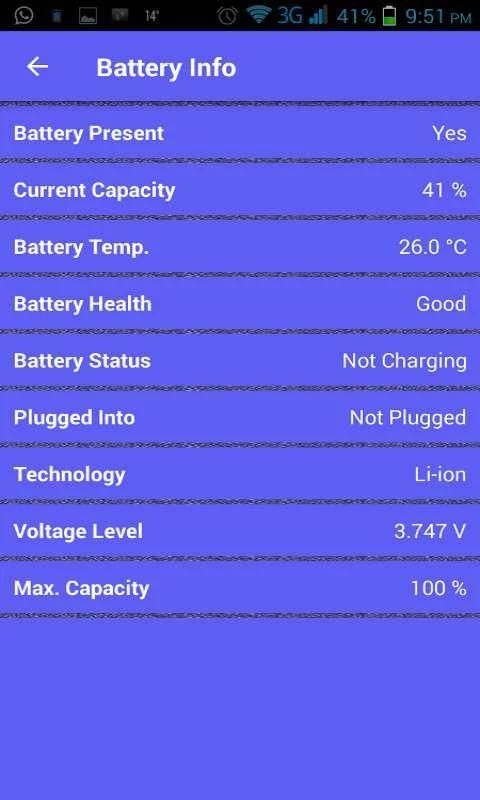 > Aplikasi ini menyediakan info dan kesehatan baterai. Jadi, Anda tepat waktu dapat membeli baterai baru yang kompatibel dengan perangkat Anda.