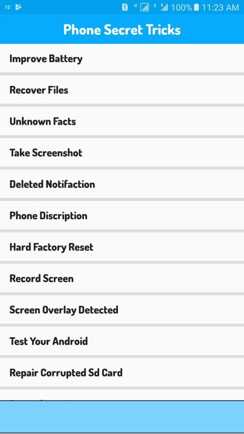 Temukan cara untuk memaksimalkan Perangkat Android Anda dengan mudah oleh semua orang. Dapatkan trik Seluler tersembunyi terbaik dengan aplikasi ini dan juga membantu Anda meningkatkan pengetahuan. Anda juga akan dapat mempelajari banyak hal tentang ponsel android Anda yang tidak pernah Anda ketahui sebelumnya. Semua trik dijelaskan langkah demi langkah dalam aplikasi trik dan tip ponsel. Kuasai ponsel Android Anda dalam hitungan menit menggunakan aplikasi ini dan perangkat Seluler apa pun mendukung beberapa kode rahasia. Deskripsi singkat ada di aplikasi.