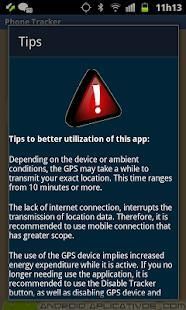 The Phone Tracker Free is a software that requires user permission that is installed and running on your device. The Phone Tracker Free can only be installed and used on devices which the user has a authorization for this type of use, or that the device owner person knows and agrees that is being monitored.