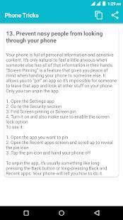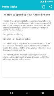 Master your Android phone within minutes using this app. Any Mobile device support several secret codes. When those codes are typed manually from the phone dial-er,they unlock a hidden menus with more options and Settings for your device. These codes can also show many useful information about your phone. Get the best hidden Mobile tricks with this app and also help you to increase knowledge. Find Latest technology Tricks and Tips for your android mobile. You will also able to learn a lot of things about your android phone. All the tricks are explained step by step. Stay connected with our Mobile Tricks app to get more tips. We continuously add new tips and tricks. Users are notified via new update.