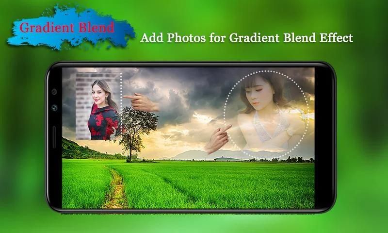 By using Gradient Blend option in this app you can blend multiple images with awesome backgound images or your own image.In this option you can blend your images in gradient manner.You can select and blend each image individually.