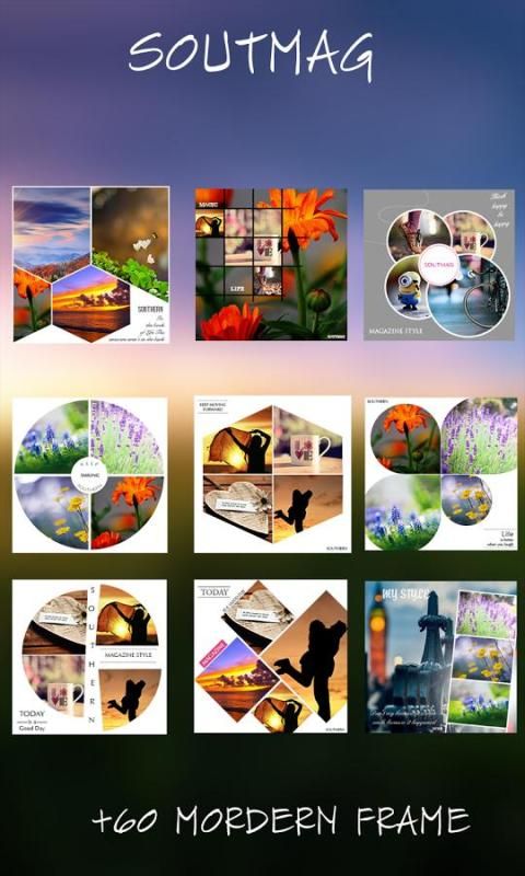 + SoutMag - Photo Collage Art -Foto Grid Collage juga memiliki 60 frame gaya modern majalah, lucu, indah gaya.
