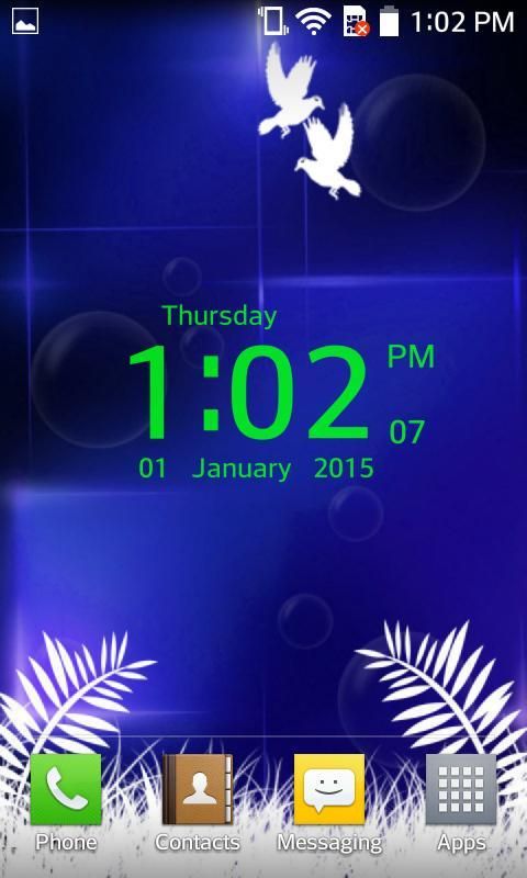 Jam digital muncul indah dengan latar belakang HD, burung, dan kupu-kupu gelembung animasi.