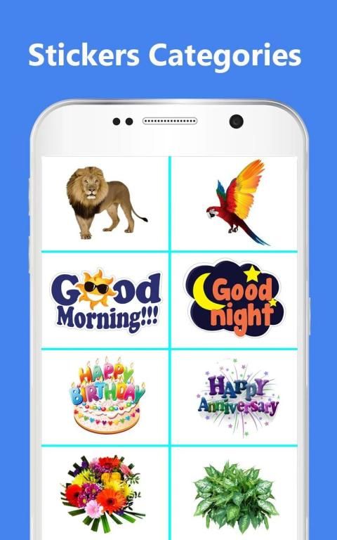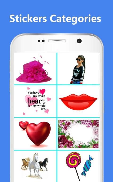 Flowers, emoji, smile, love, birds, happy birthday, photo frames and love quotes.