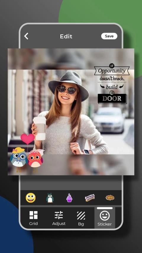Rancang foto Anda menggunakan stiker dan editor teks, tambahkan teks ke dalam gambar Anda.