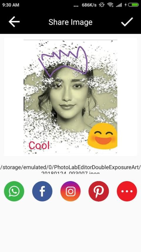 - Anda dapat berbagi gambar Photo Lab Editor: Double Exposure Art via Social Media dan banyak lagi ..