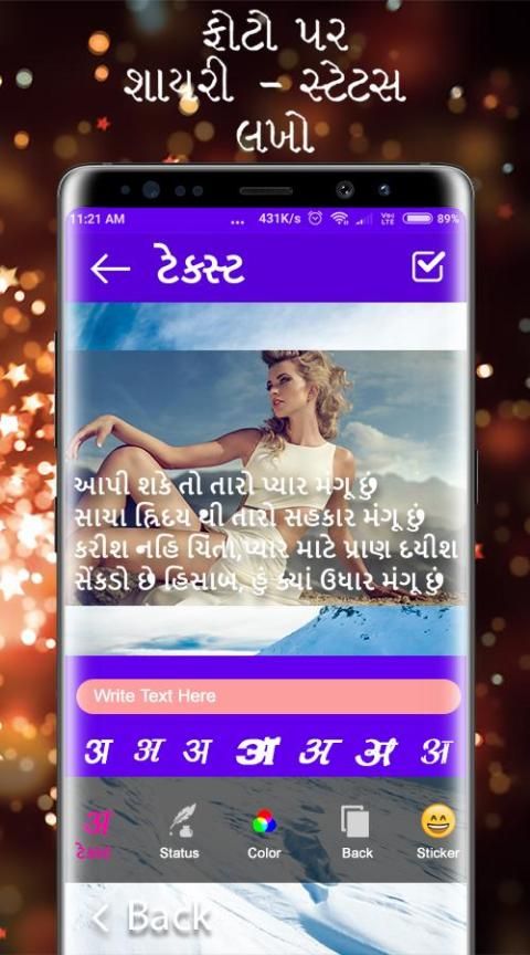 Menggunakan Menulis Hindi Shayari Pada Foto, tambahkan teks Hindi romantis dan puisi hindi pada foto galeri Anda atau pada koleksi HD dan bingkai gaya yang kaya. Menulis teks font hindi dan shayari dengan bantuan Keyboard Hindi bergaya.