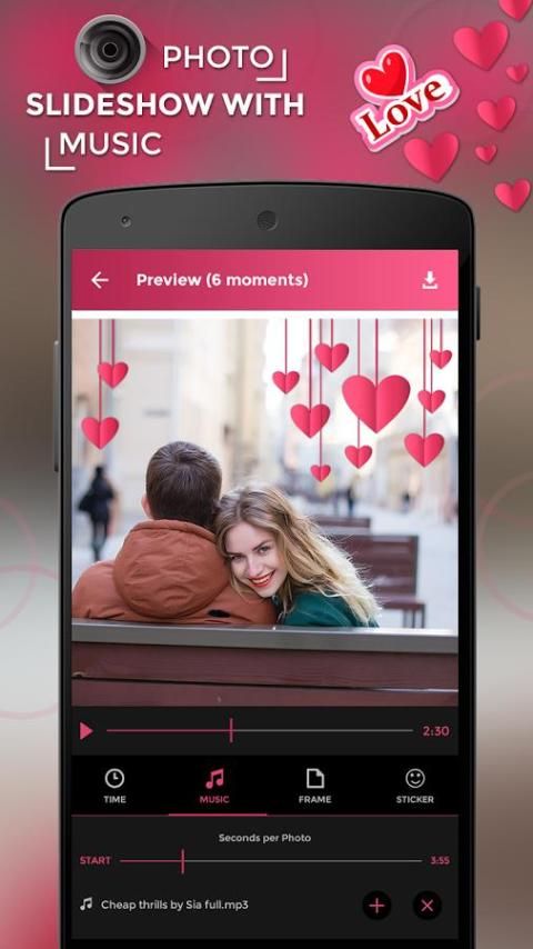 Photo SlideShow Dengan Music aplikasi membantu Anda untuk membuat cepat dan mengagumkan slideshow dengan foto dan musik yang dipilih. Untuk membuat video atau slideshow dari aplikasi ini Anda hanya dapat memilih foto membentuk gallery atau foto yang diambil dari kamera, menambahkan trek musik.