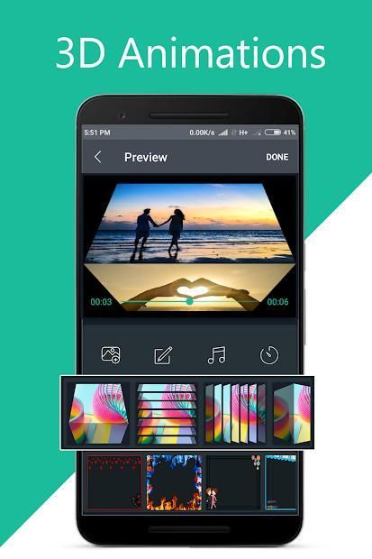 Slideshow foto dengan aplikasi musik memiliki banyak animasi 2D & 3D yang menakjubkan untuk membuat video profesional.