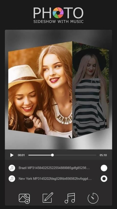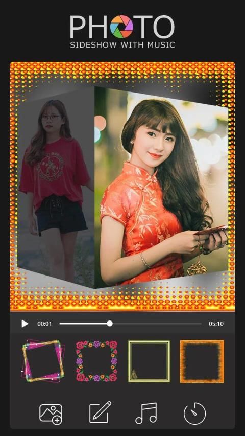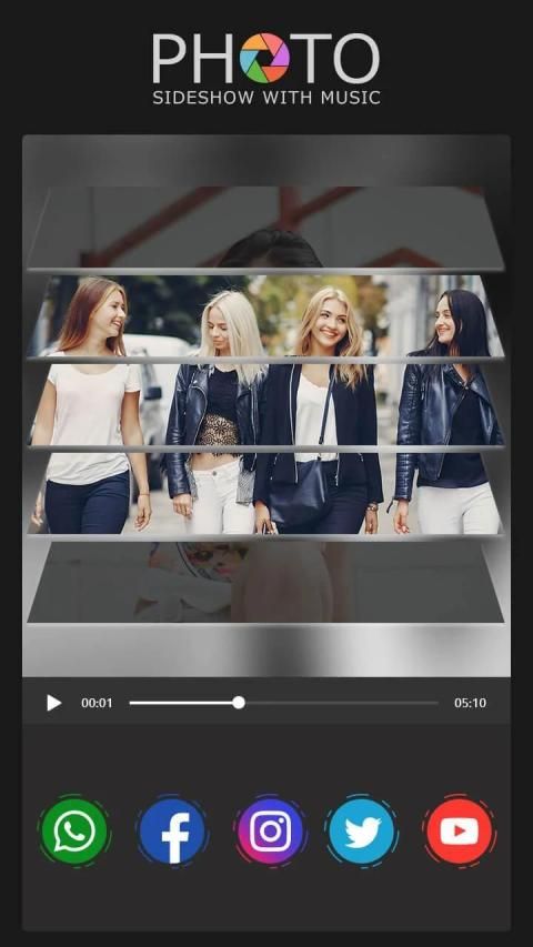 app through helps you to create fast and awesome slideshow with selected photos and music.