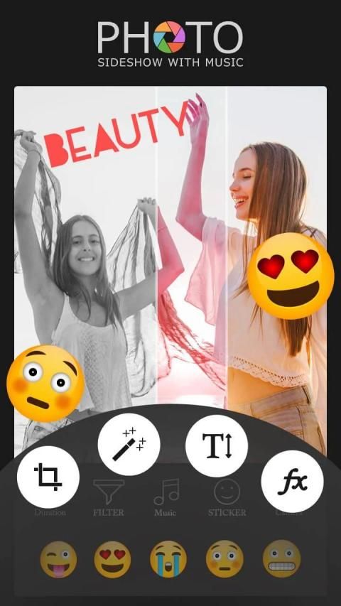You can apply in different type of text and sticker to create photo slideshow with music.