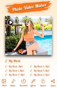 You create Video Stories from images and music with Photo Video Maker with song.Create a video with slide show style with your photos, music and animation or stickers.