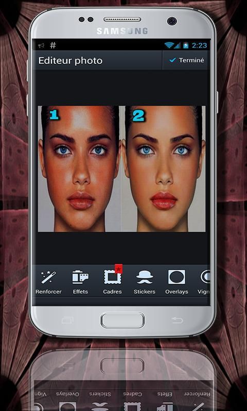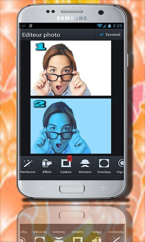 - Yang harus Anda lakukan adalah memilih gambar yang akan disesuaikan dengan baik menjemput mereka dengan Alcamra atau dipilih editor foto di telepon, kemudian mulai dalam pemilihan efek yang Anda butuhkan untuk gambar Anda dan Achtyaroadhavh bingkai yang indah dan memilih jenis tertentu pada gambar atau menempatkan gambar Anda