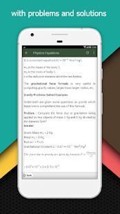 Ada lebih dari 80 formula fisika yang sangat banyak digunakan. Semua formula dilengkapi dengan contoh-contoh masalah dan solusi.