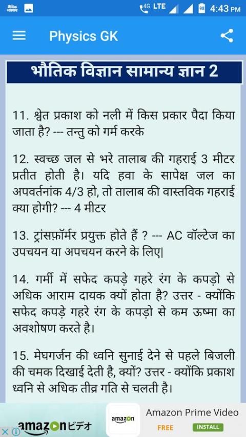 Aplikasi ini berisi berbagai umum pertanyaan pengetahuan dan jawaban dalam hindi untuk berbagai pemeriksaan yang kompetitif, ini Gk Fisika di hindi sangat membantu bagi siswa menengah hindi.