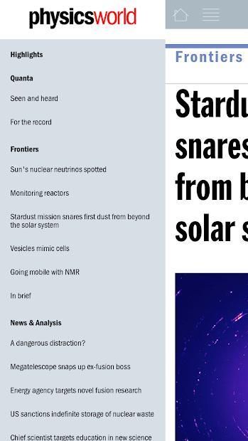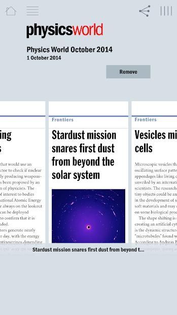 Fisika Dunia, judul anggota dari Institut Fisika, secara luas diakui sebagai majalah fisika terkemuka di dunia. Dengan aplikasi Fisika Dunia Anda dapat mengakses ini harus dibaca konten langsung dari smartphone atau tablet. Setiap bulan lebih dari 100.000 pembaca menikmati artikel-artikel mendalam dari ahli fisika terkemuka di dunia dan penulis ilmu pengetahuan, berita yang komprehensif dan analisis, potongan opini tajam, suara karir saran, ulasan terbaik buku-buku baru dan multimedia, dan halaman Pikiran Lateral yang populer . Pelanggan dapat membaca edisi terbaru segera setelah diterbitkan, dan juga akses kembali isu-isu dan konten digital-only lainnya. Non-pelanggan masih dapat men-download aplikasi untuk mengakses isu-isu fokus Fisika Dunia gratis dan laporan khusus.