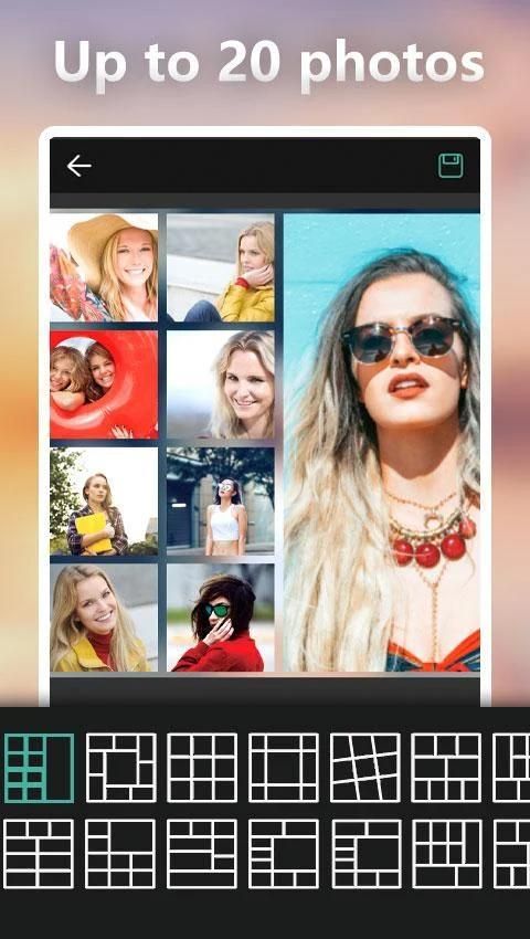 Ini mendukung hingga 20 foto kolase dan lebih dari 100 tata letak yang berbeda.