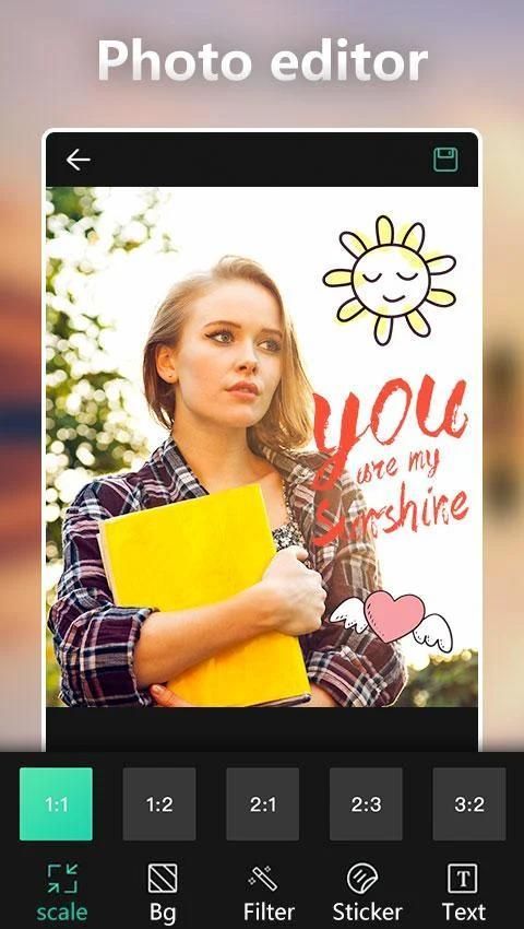 Add text on your photo.Allow you to add text on your collaged photos. Make a happy emotion text with your beautiful picture!