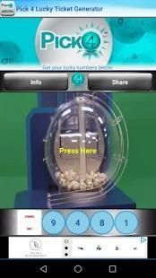 Pick 4 Lucky Ticket Generator generates 4 numbers from 0 to 9, which you can use to fill as many Lucky 4 lottery tickets as you wish. We are not affiliated with Pick 4 Lottery and the numbers generated are random. If you win a jackpot by using this application, please let us know at vgstudioapps@gmail.com