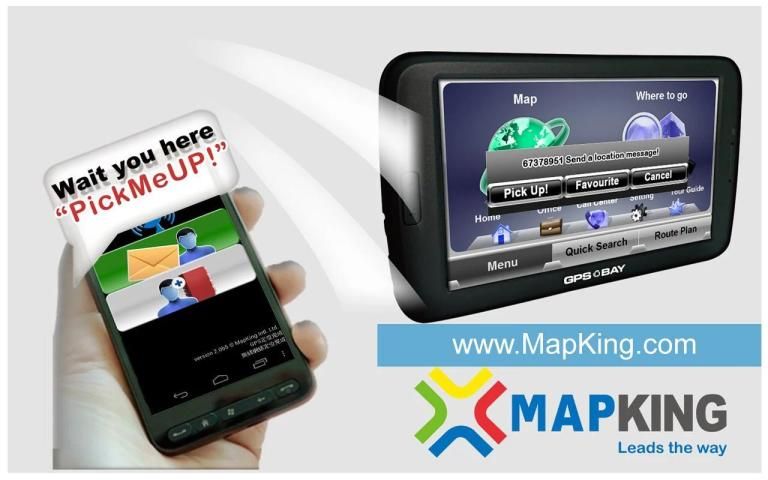 Pick Me Up: Kids and friends use GPS function send current position to MapKing Pro Connected Navigation device and MapKing Android application. The easy way to pick-up.
