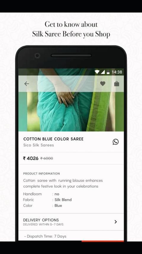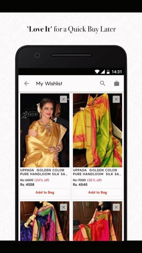 Aplikasi ini memiliki kategorisasi terbaik dari kategori sutra saree yang akan membantu pelanggan untuk mencapai pengalaman berbelanja terbaik.