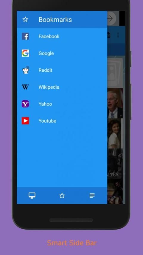 Pintar Side Bar Berisi sudah bookmarked halaman web dari situs yang paling dicari termasuk Google.It juga berisi shortcut langsung ke mode pembaca.