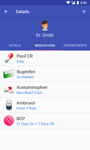 • banyak dukungan pengguna.Tambahkan obat untuk diri Anda sendiri, anggota keluarga, atau orang lain yang Anda sayangi