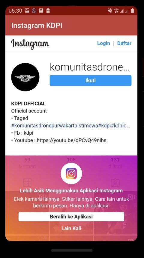 Aplikasi untuk Scan ID Card anggota pilot drone purwakarta / akan menginformasikan status keanggotaan pilot, resmi dan terdaftar dalam KDPI Official. Siapapun boleh bergabung dengan media sosial KDPI, banyak juga informasi kegiatan KDPI yang kami posting di sosial media serta selalu mengikuti kegiatan-kegiatan positif lainnya.