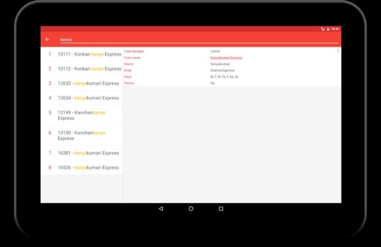 * Rincian Cari semua Kereta di India (Anda dapat melihat rincian seperti Route dan Jadwal, Waktu Perjalanan, Kilo meter perjalanan, Pantry, dll)