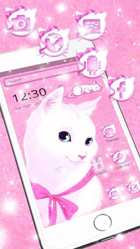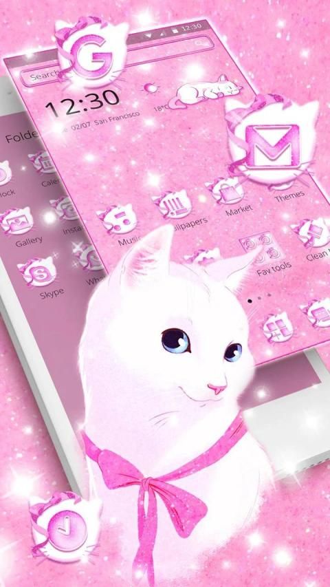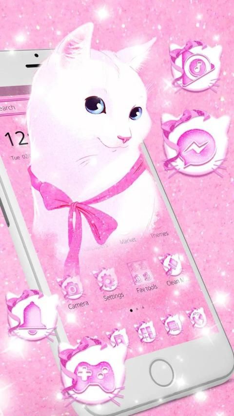 Enjoy The Pink Bow Cat Theme For Free with Impressive Wallpapers And Gorgeous Emojis Available. Install Pink Bow Cat Theme For Free.